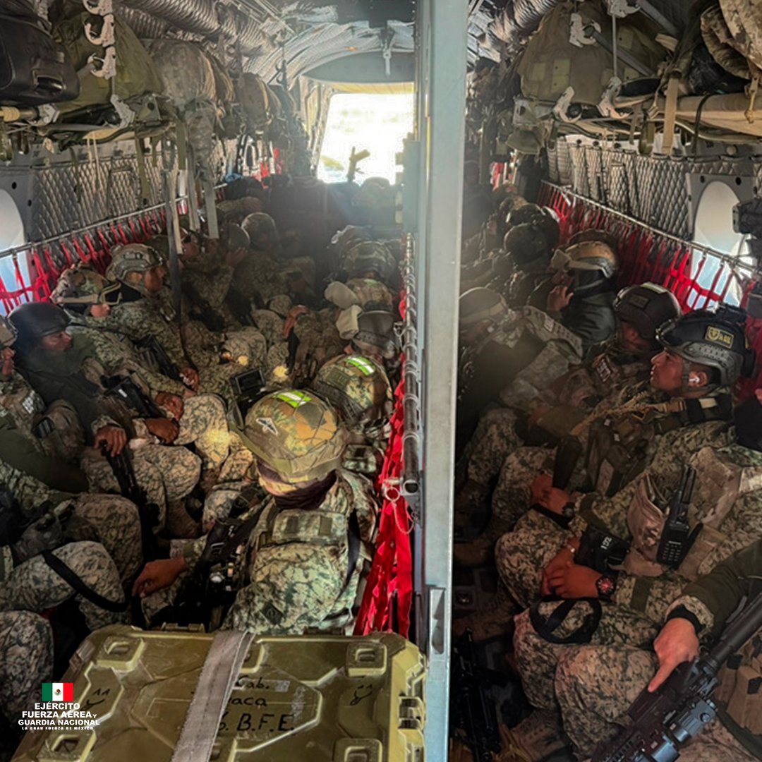 Defensa informó del despliegue vía aérea desde diferentes puntos de la República en cuatro aeronaves de transporte pesado de la Fuerza Aérea Mexicana, hacia los municipios de Culiacán y Mazatlán, para contribuir en las acciones que realizan el Ejército, Fuerza Aérea y Guardia Nacional, contra las actividades ilícitas de grupos delictivos con presencia en esa región del país.