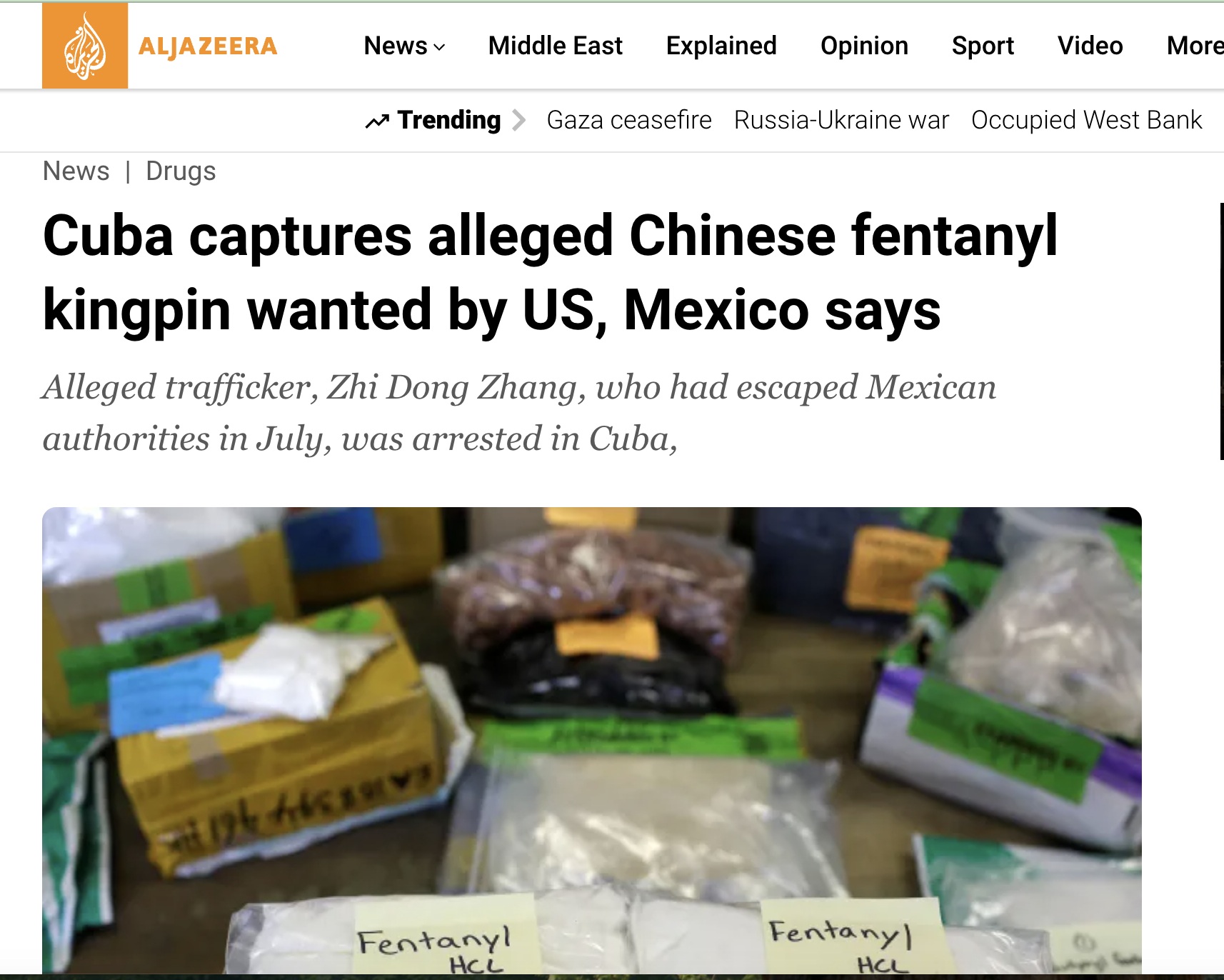 The Guardian subraya que Zhang es un operador internacional de lavado de dinero, con conexiones para transportar fentanilo desde China hacia Estados Unidos, Europa y América Latina. Su captura ocurre en un contexto de presión de Washington sobre México y China para frenar la entrada de fentanilo a Estados Unidos, un opioide 50 veces más potente que la heroína y causante de una crisis de sobredosis sin precedentes.