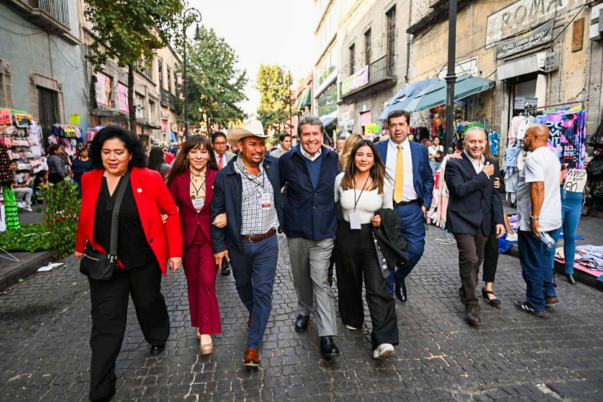 CIUDAD DE MÉXICO. 20NOVIEMBRE2025.- Legisladores de Morena, junto con el coordinador de la fracción Ricardo Monreal Ávila; caminaron por calles del centro histórico rumbo a Palacio Nacional a la reunión con la Presidenta, Claudia Sheinbaum Pardo. FOTO: CUARTOSCURO.COM