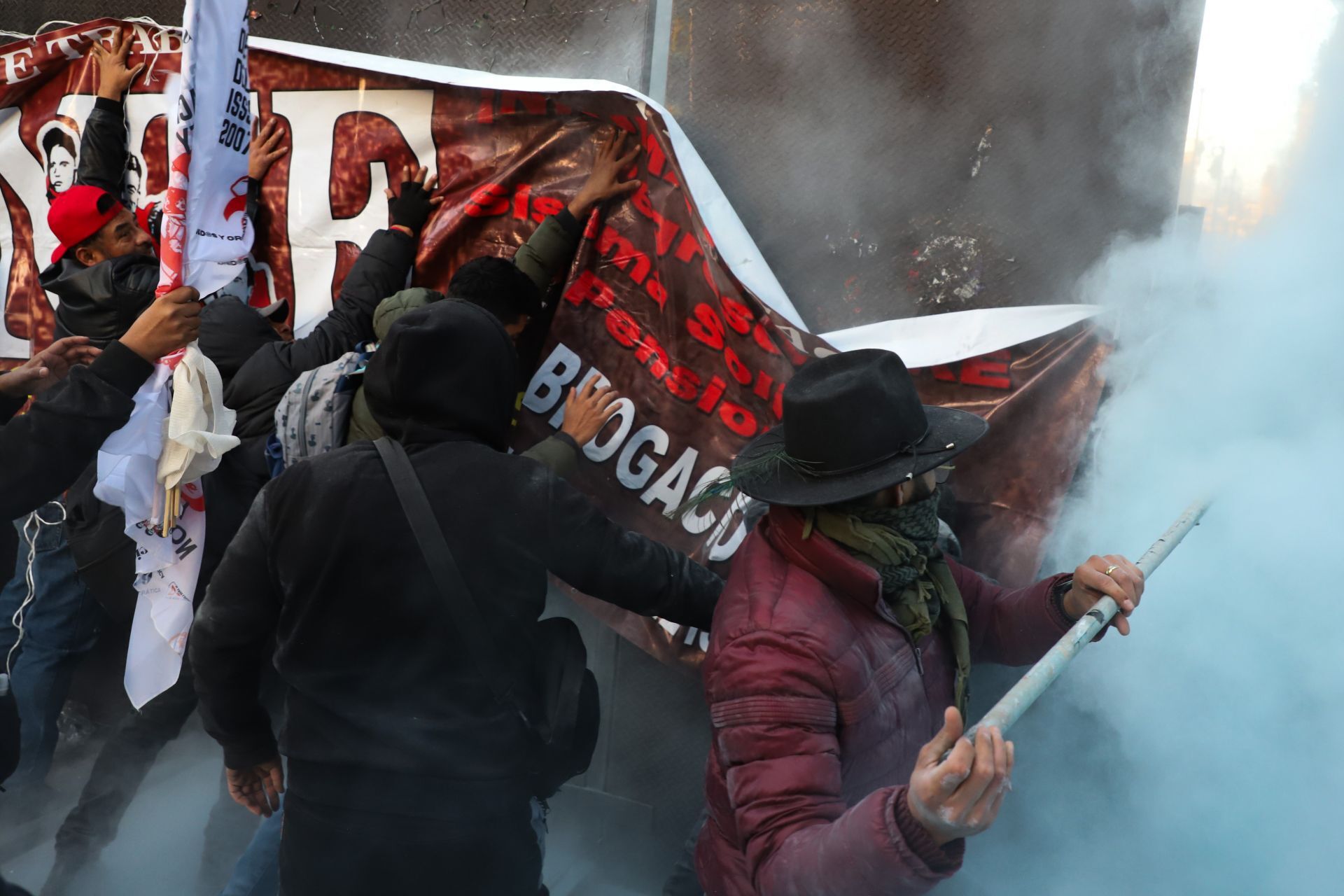 “Buscamos diálogo y encontramos gas ante nuestra marcha pacífica”, expresaron durante su mitin frente al Congreso de la Unión, donde también instalaron un campamento temporal.