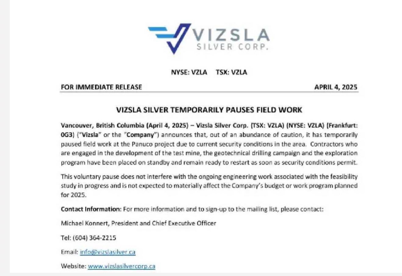 El funcionario negó que la minera Vizsla Silver hubiera reportado extorsiones previas: