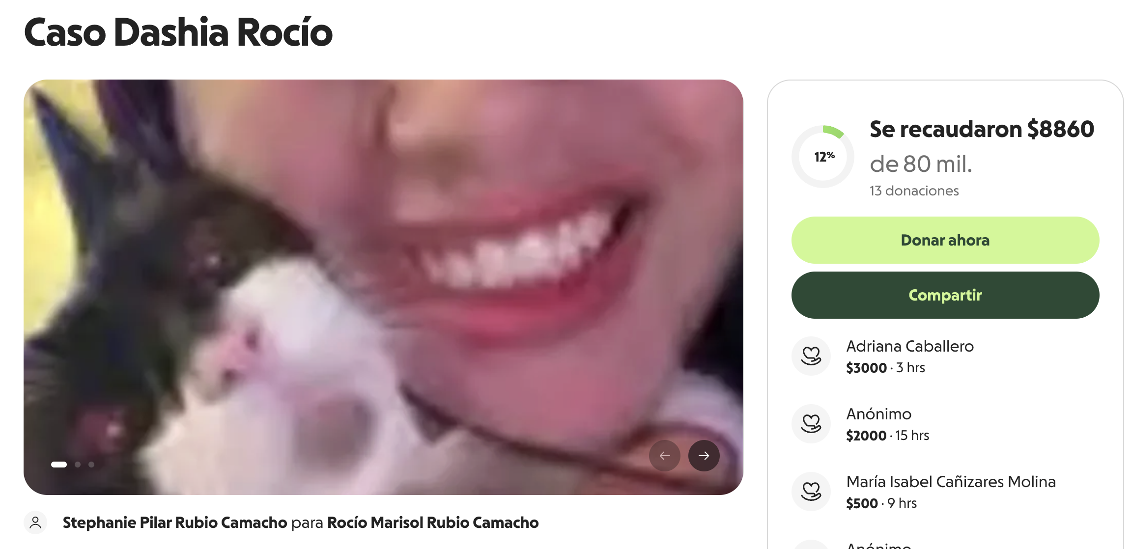 Se abrió un cuenta de apoyo para los gastos legales de Dashia. (click en la imagen)