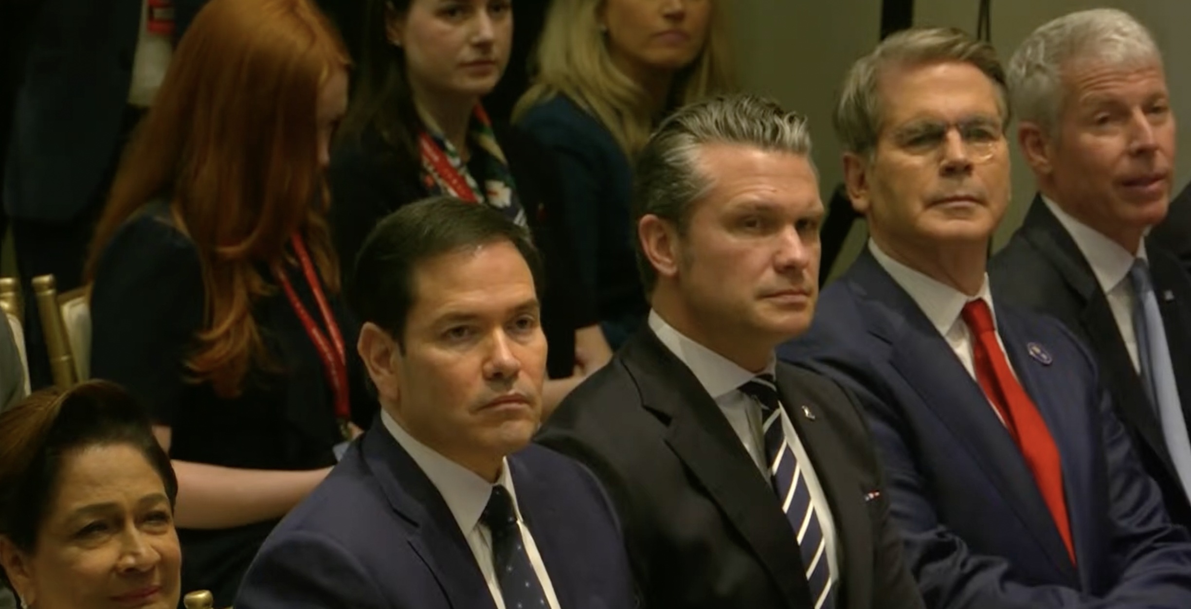 También elogió el trabajo de sus colaboradores, como Marco Rubio, secretario de Estado, a quien se refirió como “el mejor en la historia” en ese puesto, y Pete Hegseth, secretario de Guerra, cuya personalidad halagó para el tipo de misiones que Estados Unidos está llevando a cabo.
