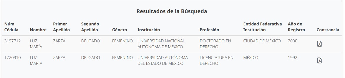 Por su parte, el mismo registro menciona que Zarza tiene un doctorado por parte de la UNAM, también en derecho. Mientras que el año de registro de la licenciatura de Godoy data del 2004, la del doctorado de Zarza es del 2000, cuatro años antes que Godoy.
