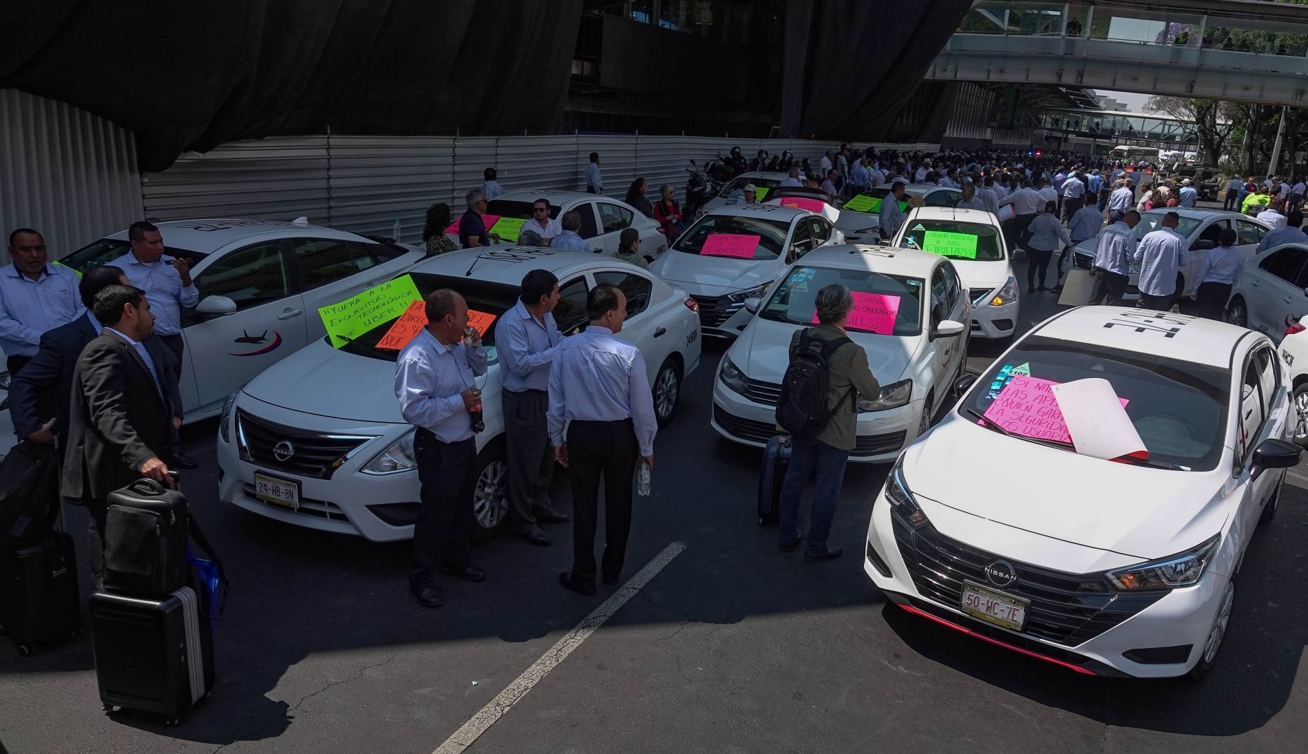 EMEEQUIS.– Este miércoles estuvo marcado por un bloque de taxistas permisionarios del Aeropuerto Internacional de la Ciudad de México (AICM), en protesta por la presencia de conductores de aplicación, en un conflicto que lleva años sin resolverse y que se recrudece con la cercanía del Mundial de Fútbol (junio de este año).