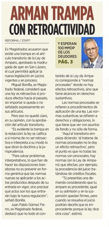 Zaldívar explicó: “El artículo transitorio que se aprobó, que lo habíamos explicado aquí como sugerencia previamente, es muy claro, en materia procesal no hay retroactividad. Todas las etapas de los juicios de amparo en trámite que hayan concluido, es decir, la admisión de la demanda, la suspensión, la resolución de algún recurso, ya no se pueden tocar”.