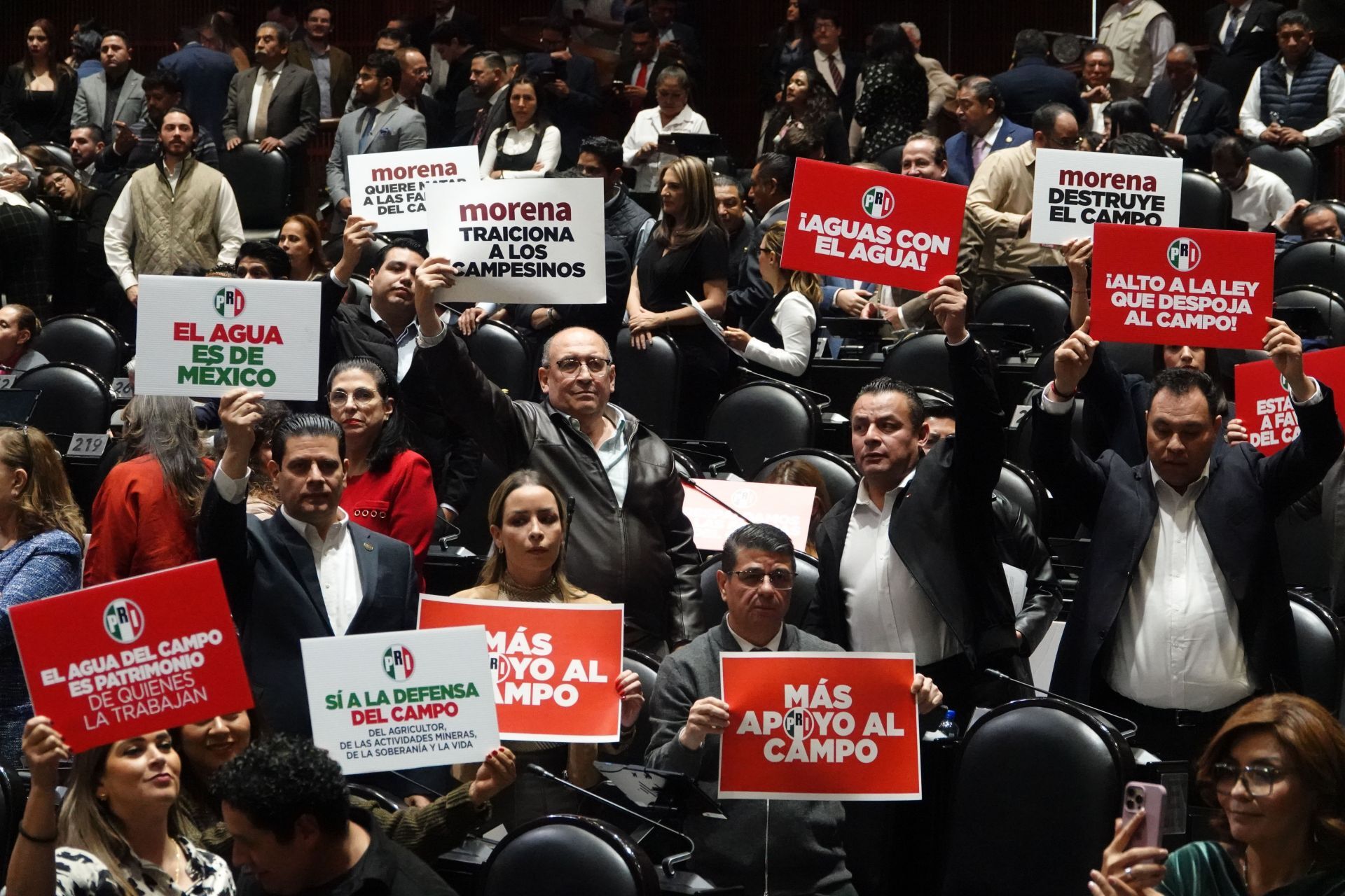 La Cámara de Diputados enfrenta una de las sesiones más largas y polarizadas de los últimos años con la discusión de la Ley General de Aguas y la reforma a la Ley de Aguas Nacionales. Tras más de 18 horas de debate, el dictamen fue aprobado en lo general con 328 votos a favor, pero la discusión en lo particular continúa con decenas de reservas pendientes. La presidenta de la Cámara, Kenia López Rabadán, reconoció la falta de diálogo y votó en contra de la iniciativa. Mientras Morena, PT y PVEM defienden la reforma como un cambio de visión para garantizar el acceso al agua, la oposición denuncia riesgos de discrecionalidad y falta de presupuesto. Agricultores acusan traición y advierten que trasladarán sus protestas al Senado, intensificándolas en diciembre