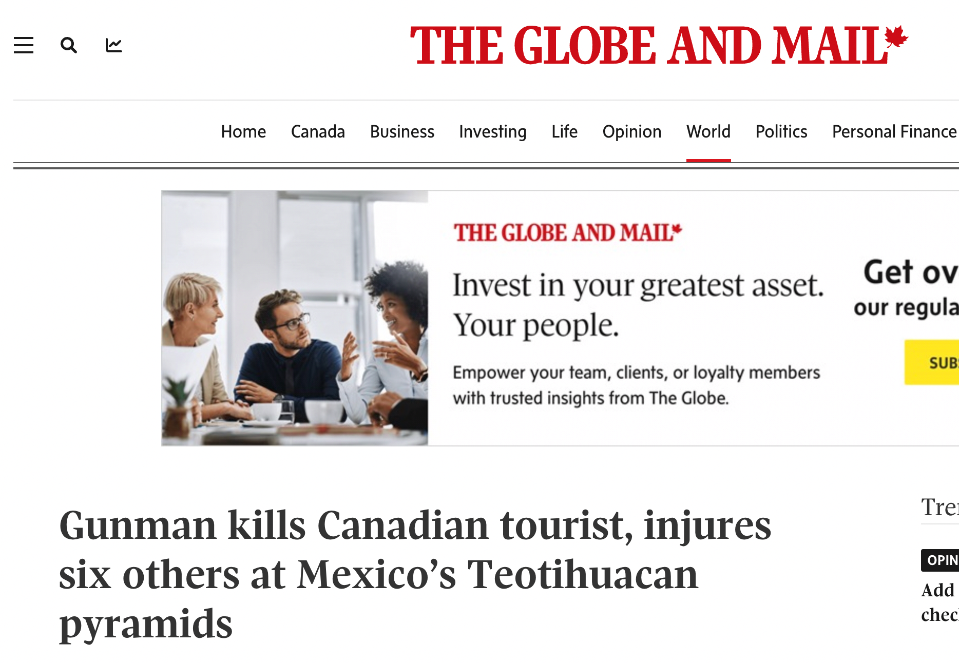 Por su parte, el diario británico BBC News destacó en sus titulares que la tranquilidad de las ruinas prehispánicas fue rota por un acto de violencia premeditado, mientras que The New York Times subrayó la nacionalidad extranjera de la víctima principal, señalando que la mujer asesinada era de origen canadiense, lo que activó protocolos de asistencia consular.