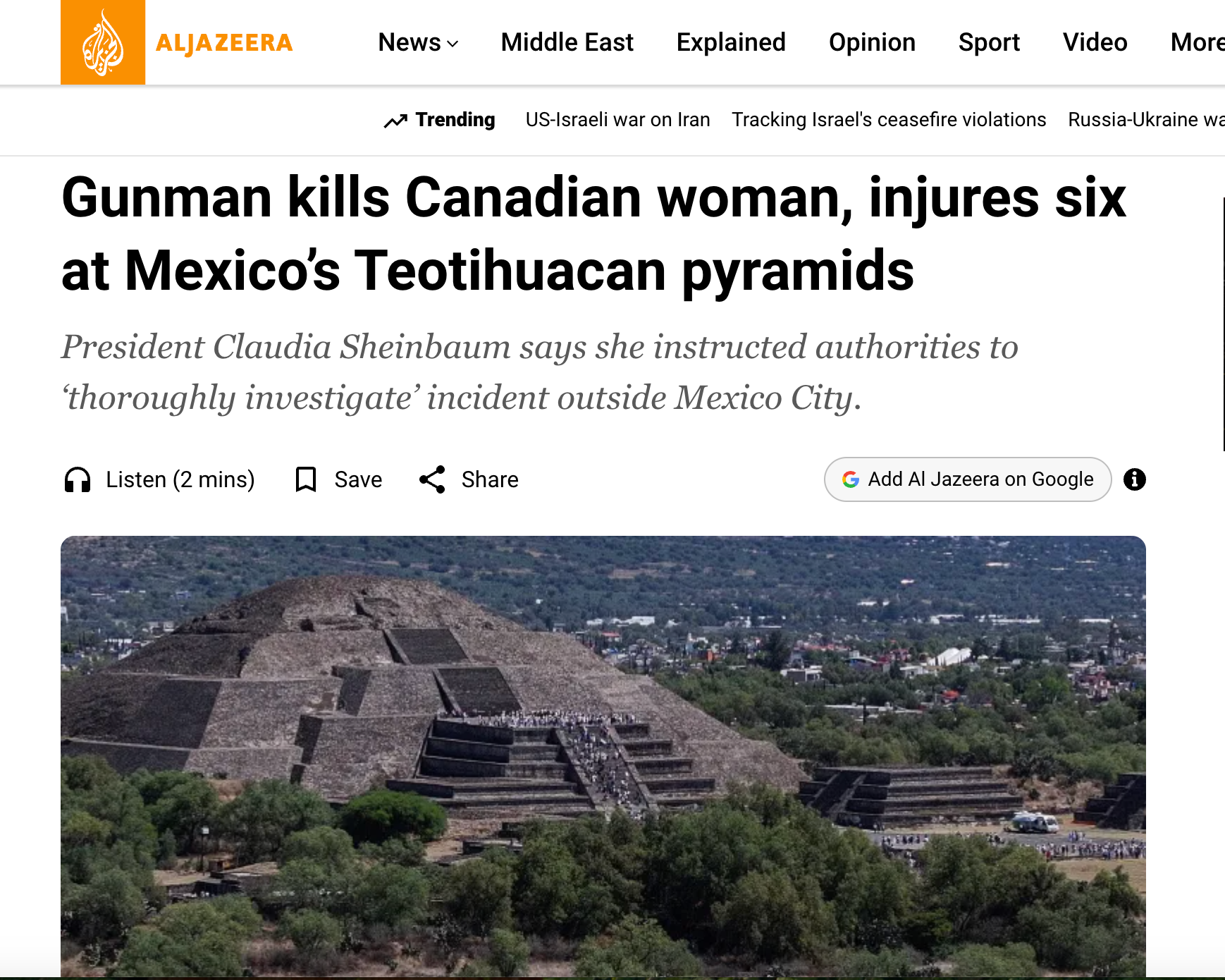 Medios globales cuestionan la seguridad en Teotihuacán tras ataque armado