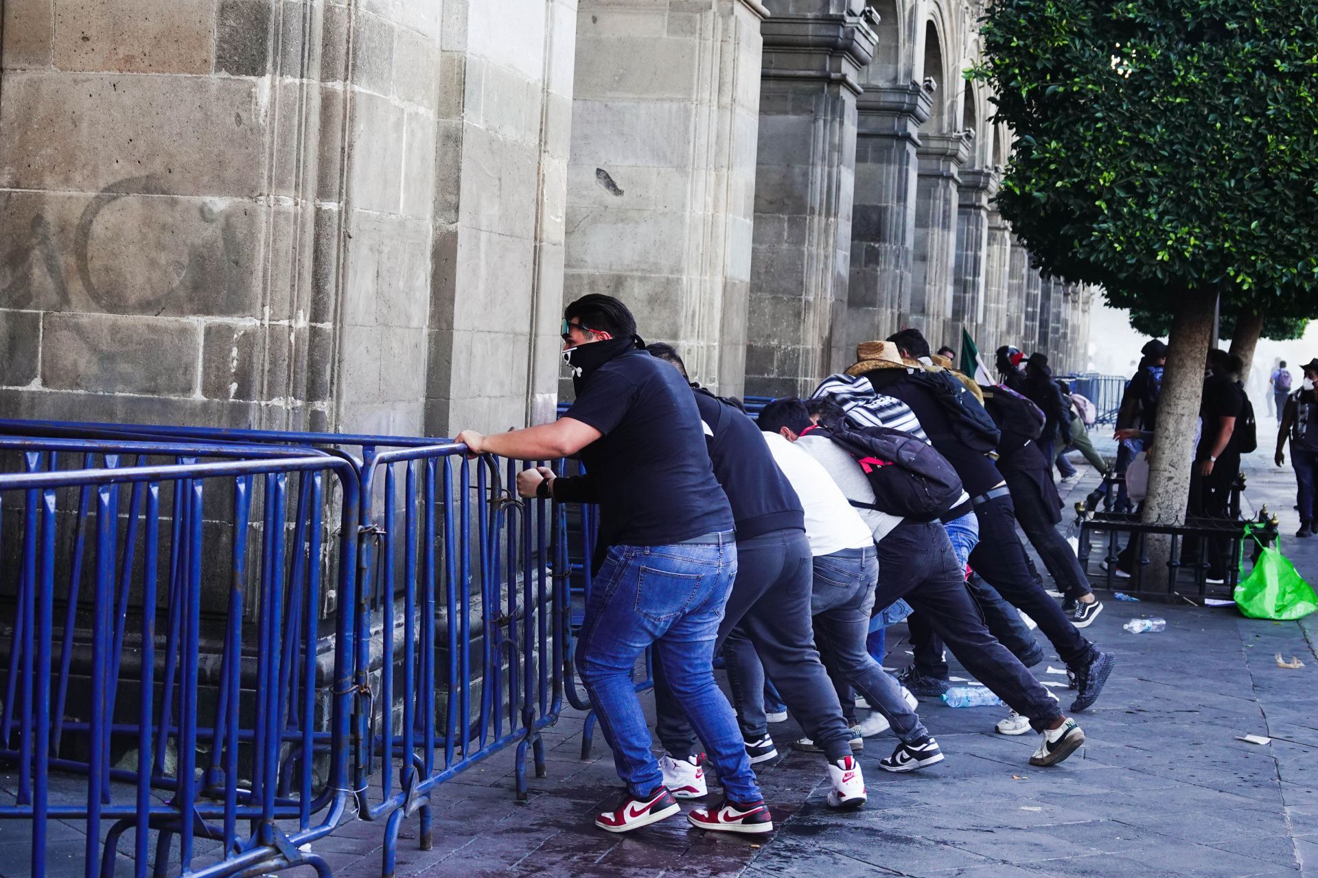 Las protestas iniciaron de manera pacífica, pero se tornaron violentas en la capital cuando un grupo de personas encapuchadas (descritas en algunos reportes como infiltrados) derribó vallas metálicas que protegían Palacio Nacional, residencia de la presidenta Claudia Sheinbaum.