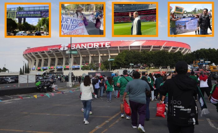 Mosaico de reclamos sociales afuera del Estadio Banorte