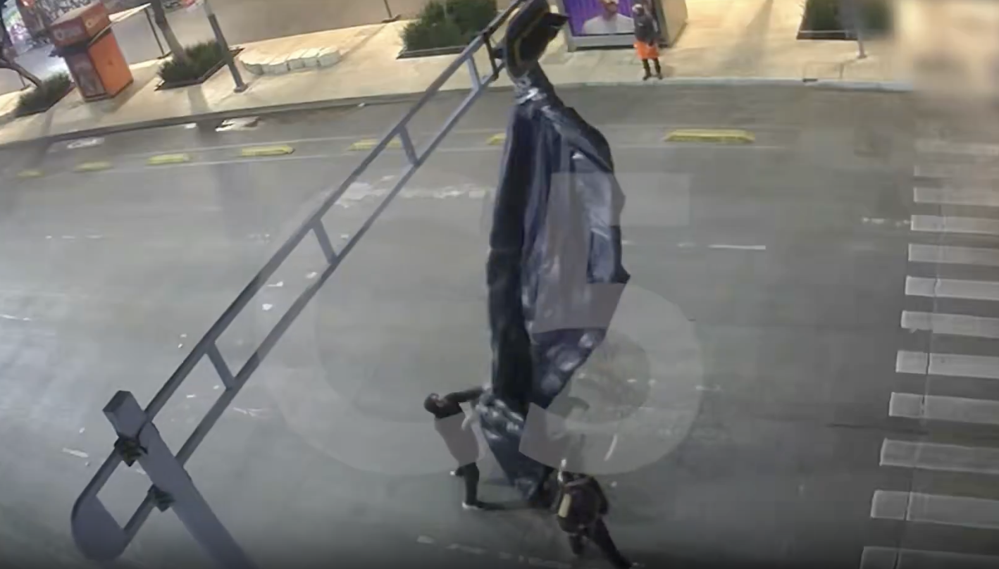 Después de varios intentos, sacudiendo el poste del semáforo, logran su cometido, sin embargo, en el proceso dañaron el juego de luces, que quedaron apuntando hacia el suelo.
