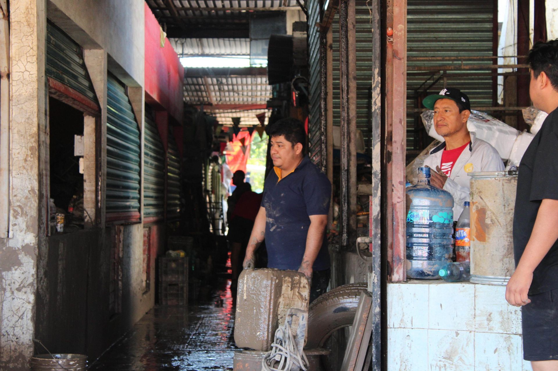 Los comerciantes trabajan con palas y cubetas, intentando limpiar entre el barro endurecido, sin maquinaria ni apoyo gubernamental. “Todo se perdió, no quedó nada”, lamenta Amado, mientras observa su bodega vacía. “Cada local tenía más de 70 toneladas de producto. Ahora solo tenemos lodo y el olor a podrido”.