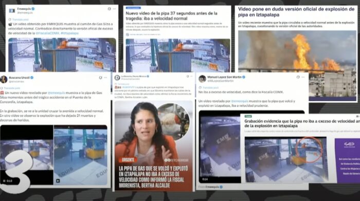 Gobierno afirma que los videos de EMEEQUIS no son del lugar del accidente, cuando la nota aclara –desde el título– que el primero es 37 segundos antes del impacto y el segundo es de la explosión.