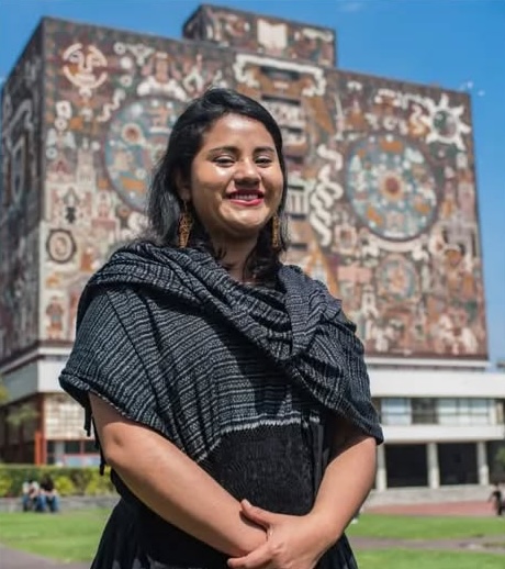 “Nadia López García cuenta con una reconocida trayectoria nacional e internacional. Hija de jornaleros agrícolas oaxaqueños y hablante de lengua mixteca (Ñuu Savi), realizó sus estudios en contextos bilingües y multigrado, experiencia que marcó su vocación por la educación y la defensa de las lenguas originarias”.