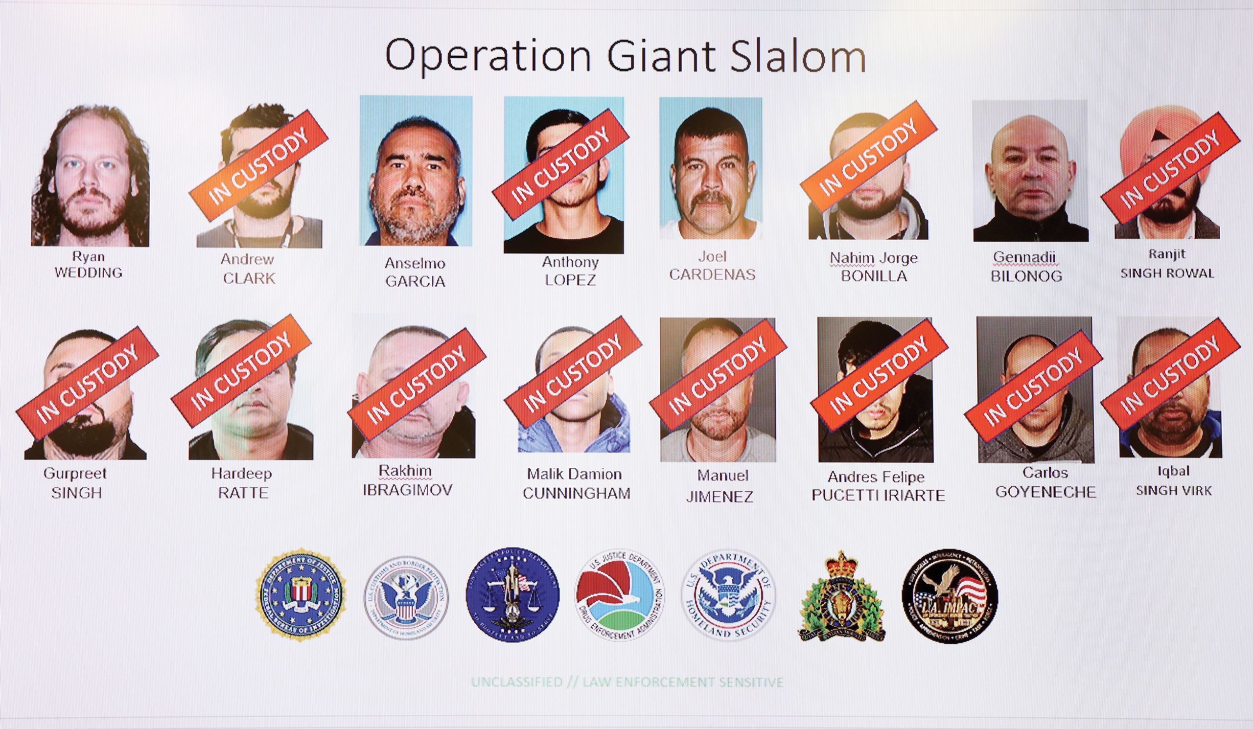 En 2024, durante la “Operación Giant Slalom” una investigación internacional conjunta, liderada por el FBI y otras agencias, se desmanteló una vasta red de tráfico de drogas a través de América del Norte. Ryan Wedding presuntamente dirigía esta red criminal y se dio a la fuga antes de ser capturado como parte de esta operación, evitando así su arresto y juicio.