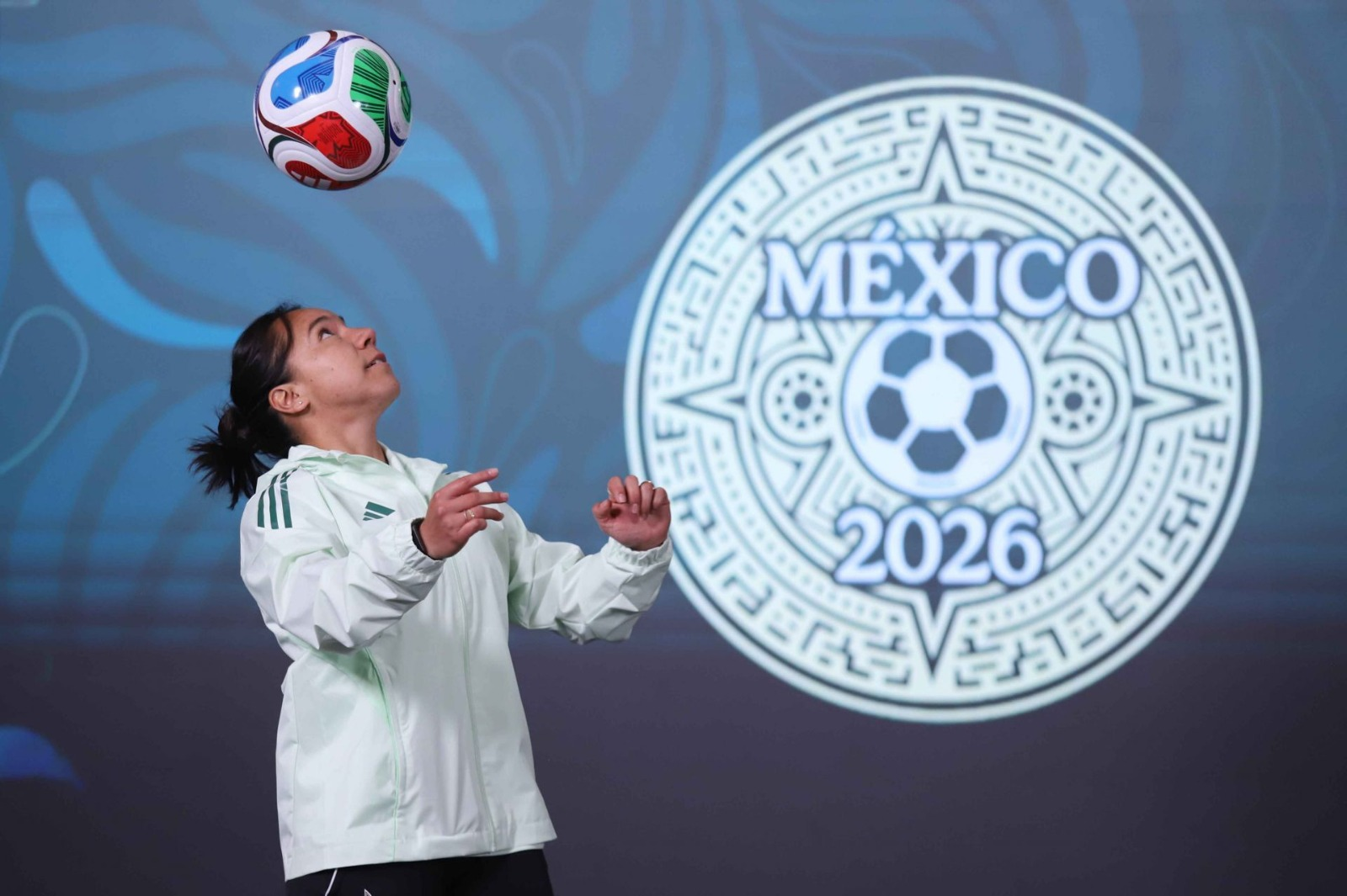 Durante la mañanera también se presentó la dinámica para ganarse el boleto de la inauguración del mundial. La futbolista Charlyn Corral dio una muestra de sus dotes para dominar el balón. (Cuartoscuro)