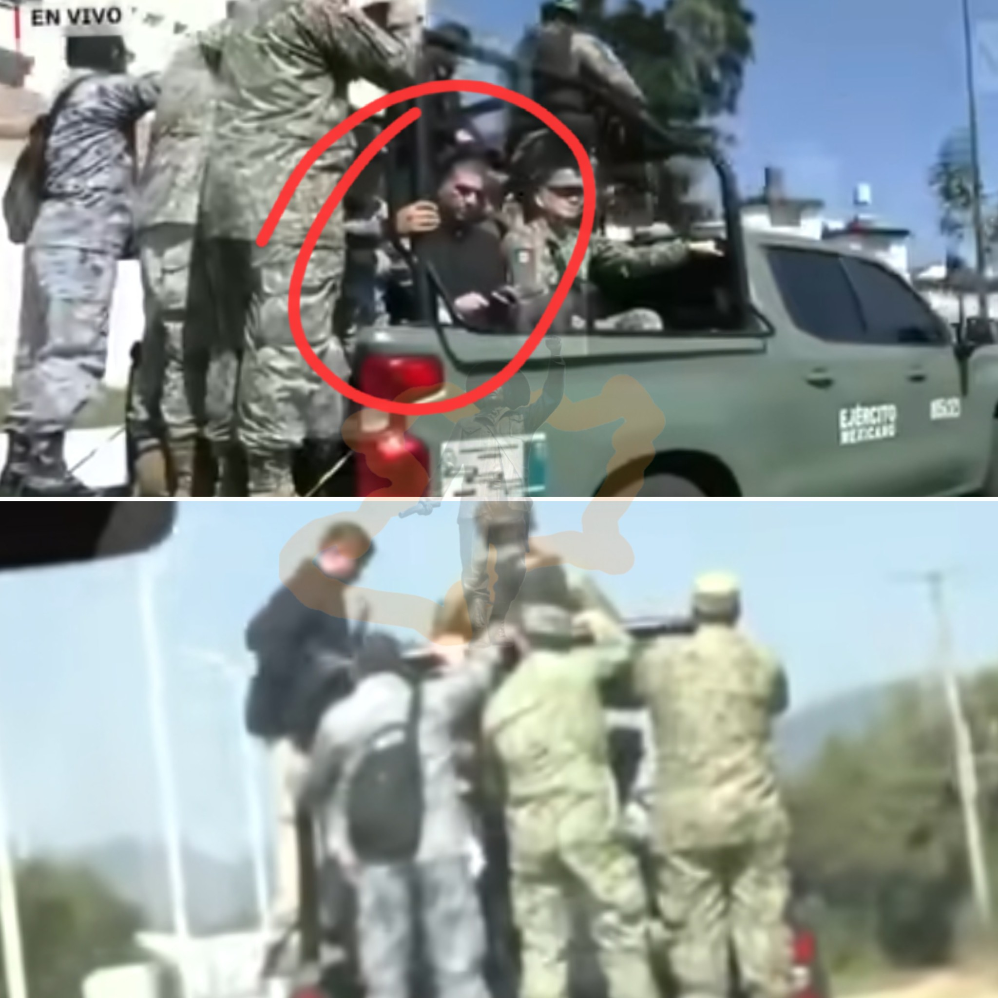 Harfuch fue acomodado en la batea de una camioneta del Ejército cubierto por soldados que lo resguardaban con su cuerpo. Foto: Chiapas al Momento.