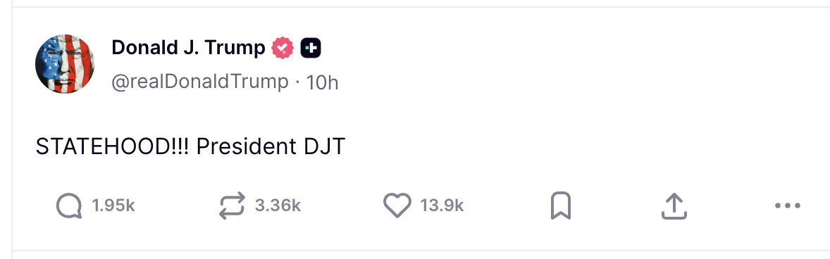 Trump simplemente escribió “statehood” (categoría de estado) en lo que fue interpretado como un guiño para anexar Venezuela.