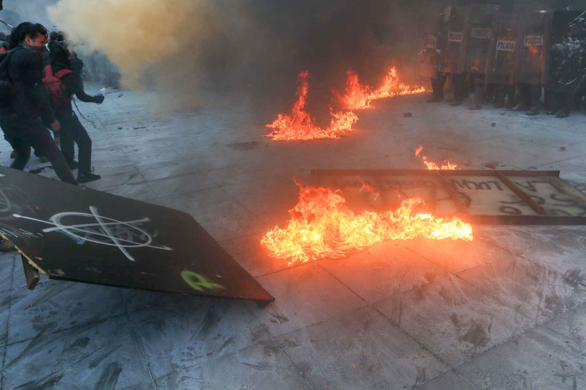 Autoridades señalaron a 350 encapuchados, identificados como parte del llamado “Bloque Negro”, como responsables de las agresiones. Con piedras, palos, bombas molotov y petardos, atacaron a elementos de la Secretaría de Seguridad Ciudadana (SSC).