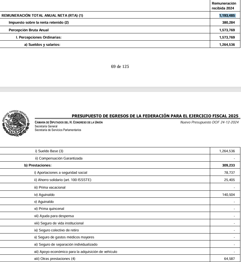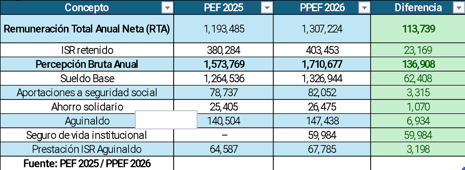 De acuerdo con el proyecto de presupuesto, cada legislador pasará de ganar 1 millón 193 mil pesos netos al año en 2025 a 1 millón 307 mil en 2026. Es decir, un aumento de 113 mil 739 pesos más en el bolsillo, más de lo que gana un trabajador con salario mínimo en todo un año.