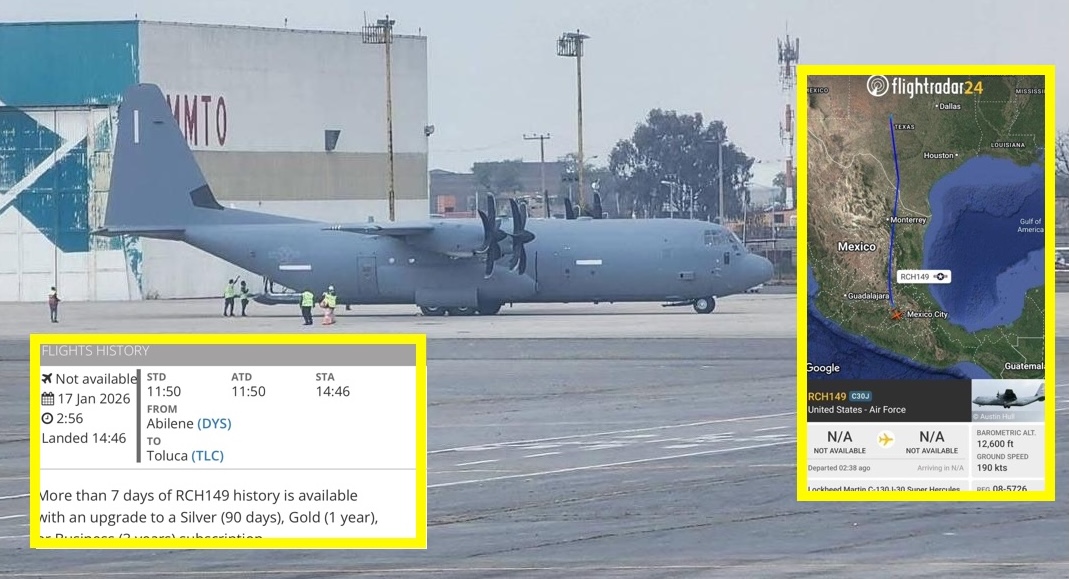 El Gabinete de Seguridad confirma lo publicado por EMEEQUIS: la presencia del avión Hércules de EU en Toluca "obedece a un vuelo autorizado por autoridades mexicanas, relacionado con actividades de capacitación”.