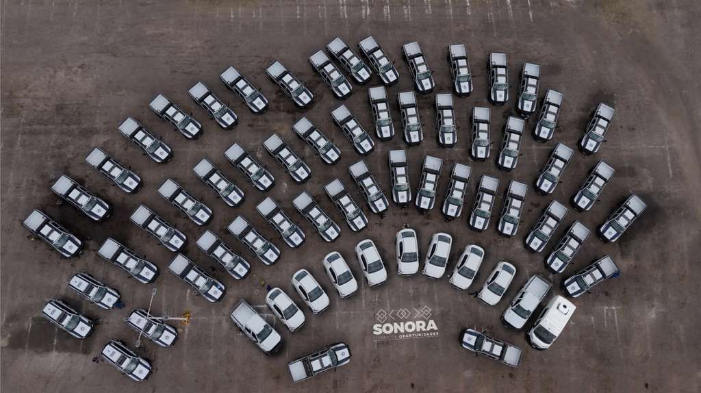 Acompañado del secretario de Seguridad Pública, Braulio Martínez Navarrete, el titular del Ejecutivo Estatal encabezó la entrega de 67 patrullas.