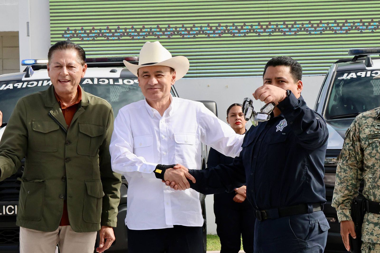 El gobernador Alfonso Durazo Montaño entregó 37 nuevas patrullas a la Policía Estatal de Seguridad Pública, con una inversión superior a 50.6 millones de pesos. En el marco del Día del Policía 2026, el gobernador encabezó una ceremonia en la que se otorgaron más de 100 reconocimientos y condecoraciones a elementos de distintas corporaciones. El esfuerzo y compromiso del Gobierno de Sonora con la seguridad y tranquilidad de las y los sonorenses se ha visto reflejado en el fortalecimiento de las corporaciones con entrega de nuevas patrullas, al pasar de 286 el inicio de la administración a más de 500 unidades a la fecha.