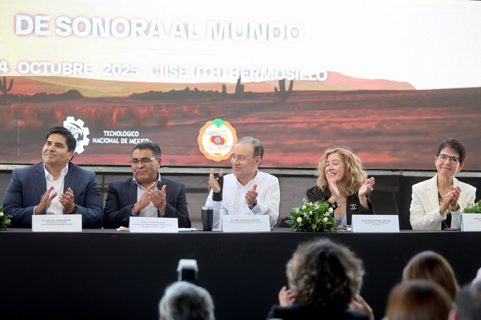 María Elena Gallego Lechuga, presidenta y fundadora de Beyond Borders Automotive México, destacó la importancia de la colaboración entre empresas, academia y gobierno para fortalecer la industria automotriz nacional. También agradeció el respaldo constante del gobernador Durazo hacia la iniciativa privada y el sector maquilador.