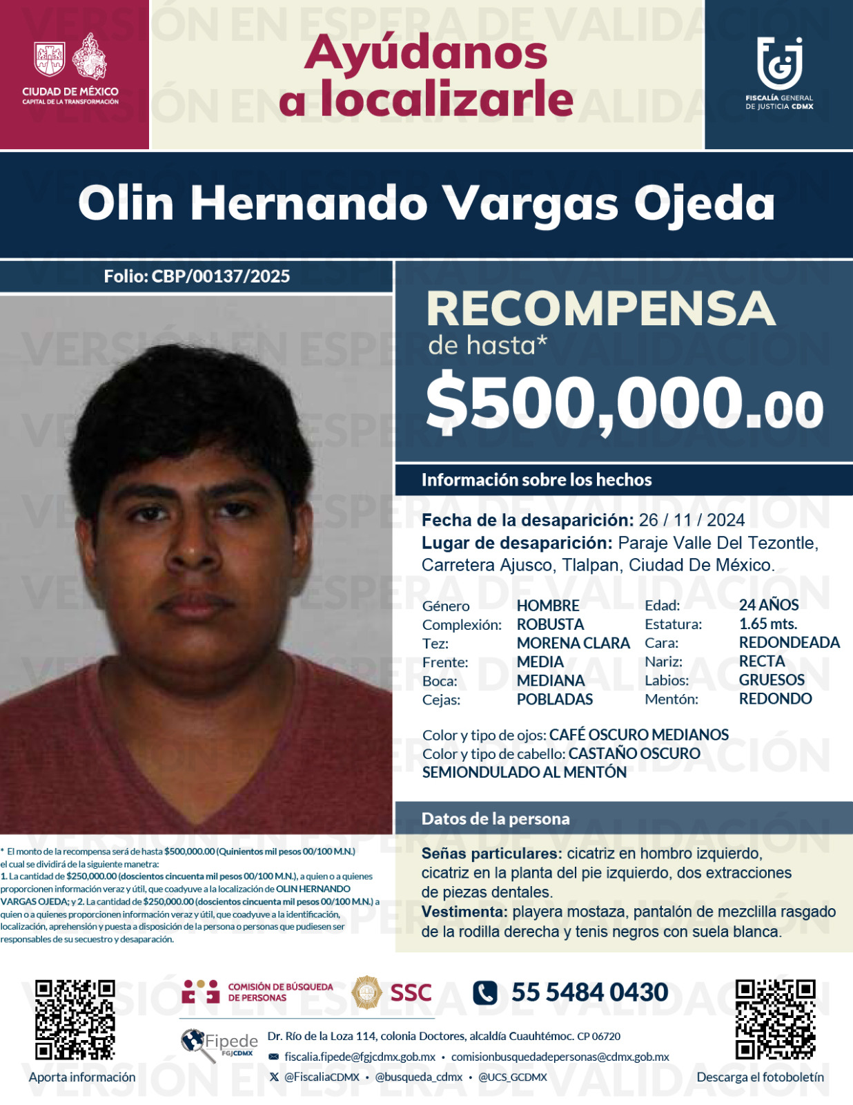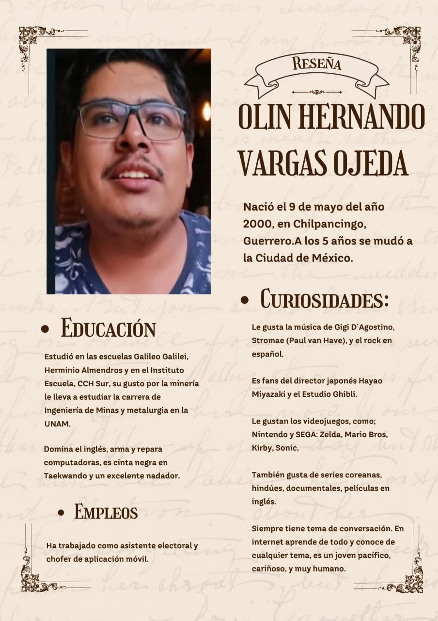 EMEEQUIS.– El 26 de noviembre de 2024, Olin Hernando Vargas Ojeda salió rumbo al Ajusco con la promesa de reencontrarse con una amiga del CCH. Nunca volvió. Casi un año después, su padre, Fernando Vargas, sigue buscando respuestas. Para él ni la Comisión de Búsqueda ni la Fiscalía han hecho su trabajo.