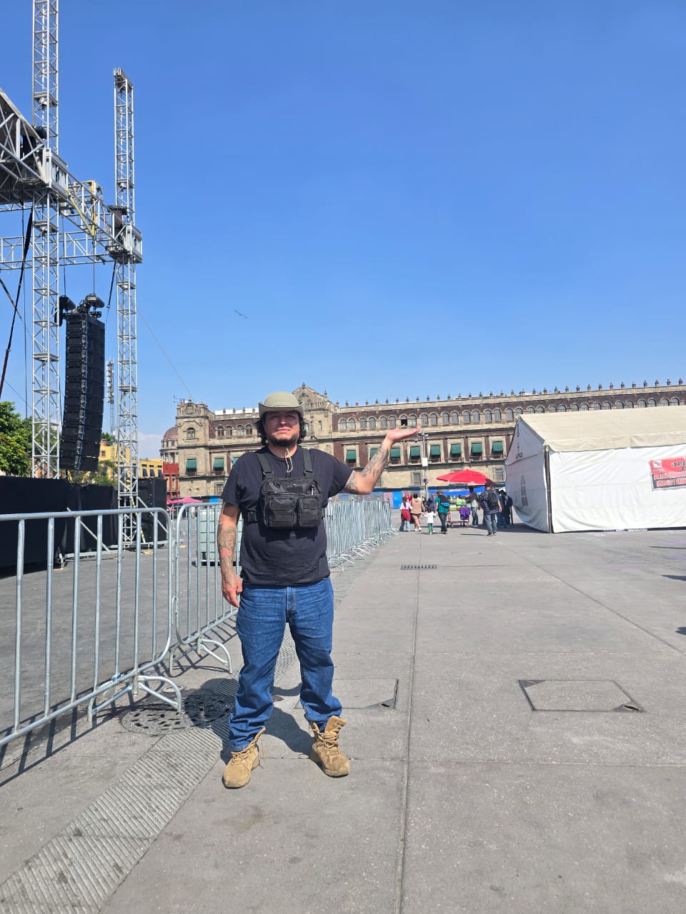 ¿Qué saludo le mandaría Víctor Hugo a los funcionarios del gobierno que insisten que el video fue hecho con Inteligencia Artificial? Víctor Hugo aprovecha que estaba mostrando los tatuajes de sus brazos para hacer una típica seña mexicana. Por partida doble.