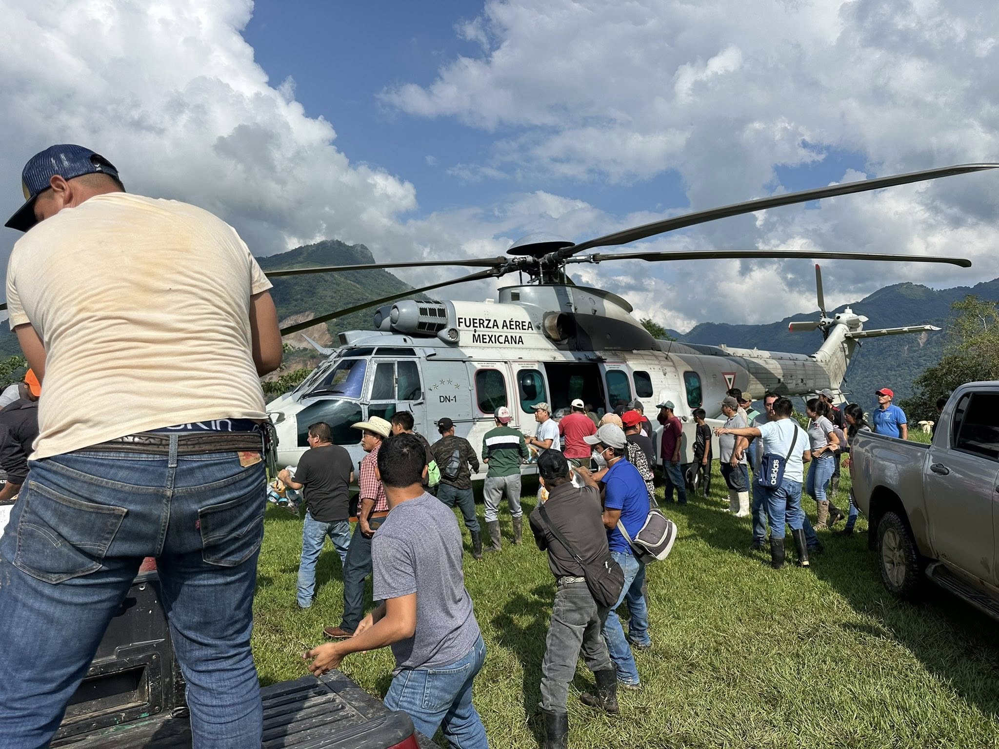 Ahí, después de tres días de emergencia, este domingo aterrizó un helicóptero Cougar 1007 de la Guardia Nacional, pero, de acuerdo con los damnificados que han podido comunicarse con sus familiares en otros municipios, las 300 despensas que llevaban fueron insuficientes.