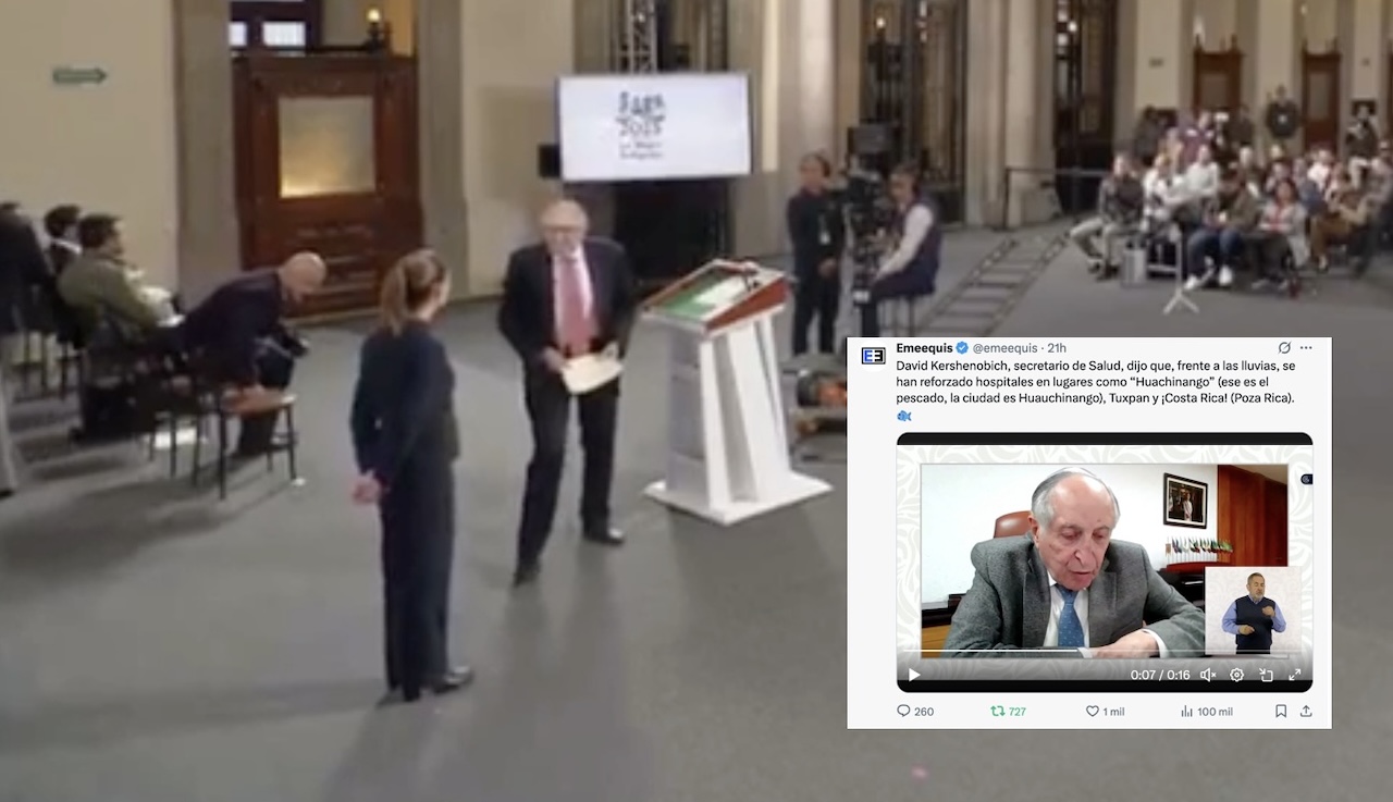 Ante la pifia cometida por el doctor David Kershenobich un día antes, que se volvió video viral al referirse como Huachinango a uno de los municipios afectados y como Costa Rica a otro, la presidenta Claudia Sheinbaum conminó este martes al secretario de Salud a no mencionar los municipios afectados durante su intervención en La Mañanera