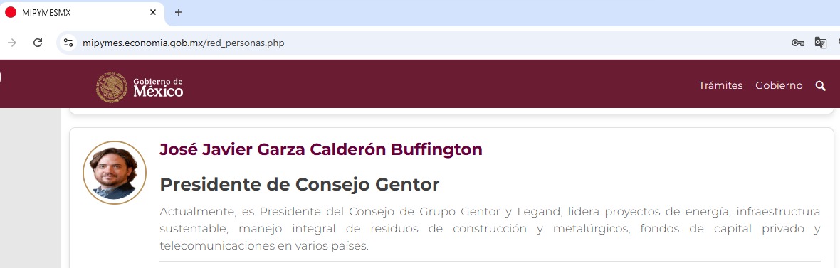 Garza Calderón Buffington fue integrado al Consejo PYME del TMEC por el gobierno de México en abril de 2024, y es además presidente del consejo de administración de Grupo Gentor y Legand, que desarrollan negocios en los sectores energético, infraestructura, fondos de inversión y telecomunicaciones.