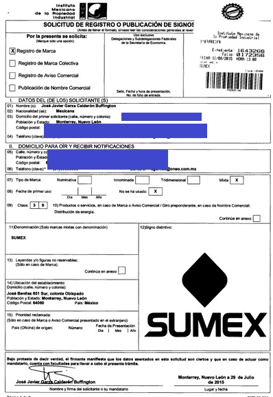 Digno de anotarse el dato de que Garza Calderón Buffington registró la marca SUMEX ese mismo mes, el día 12, de acuerdo con el registro del Instituto Mexicano de la Propiedad y el Comercio (IMPI). Los registros consignan, no obstante, que el contrato con CENACE se firmó hasta marzo de 2016.
