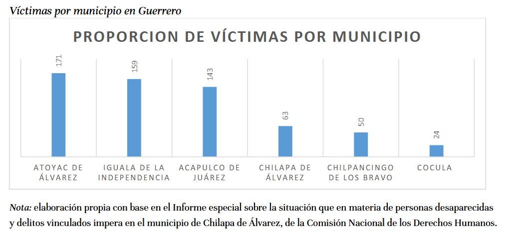 Según la organización Biomex en su informe sobre desaparición forzada en Guerrero, publicado en 2025, muestra la grave crisis de desaparición forzada en varios municipios del estado.