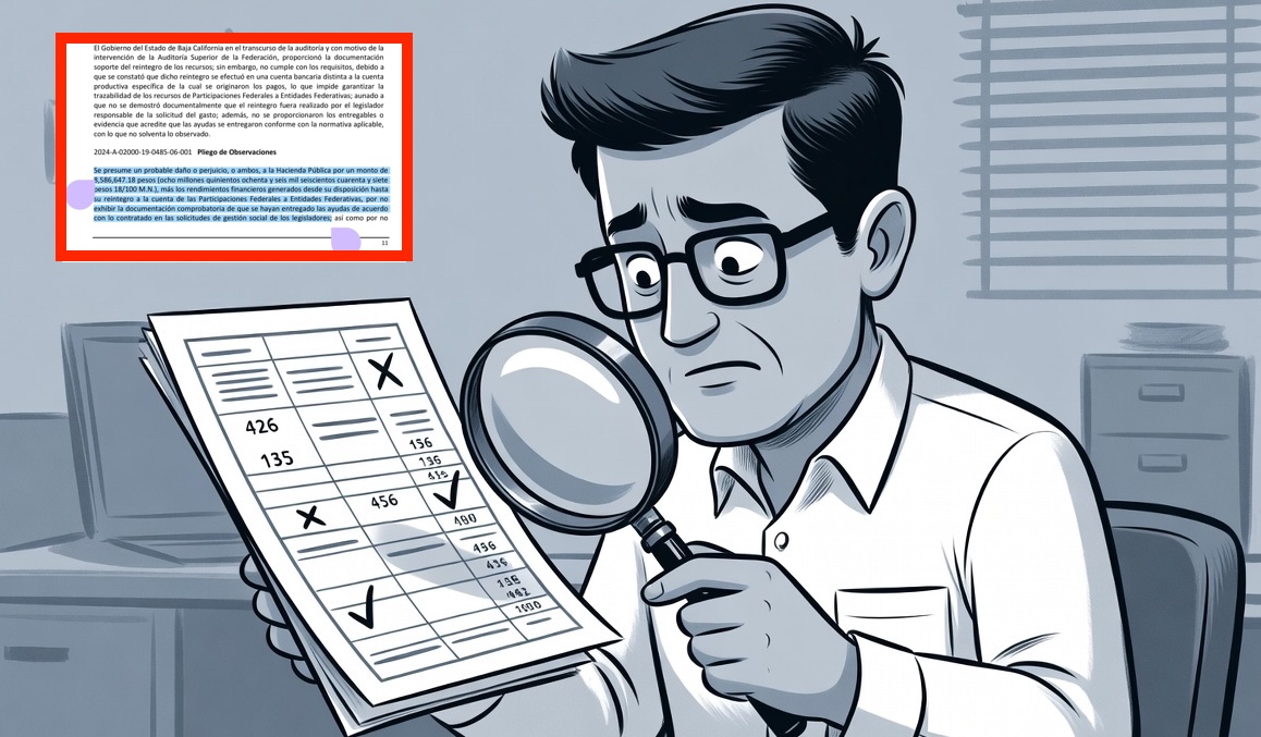 No obstante, el Poder Legislativo del Gobierno del Estado de Baja California “no presentó soporte que acredite que las ayudas se entregaron a los beneficiarios”, ya que hubo “inconsistencias entre las solicitudes y los reportes fotográficos”, pese a que el ente local mostró facturas, pólizas y comprobantes de pago con los que pretendía justificar el gasto.