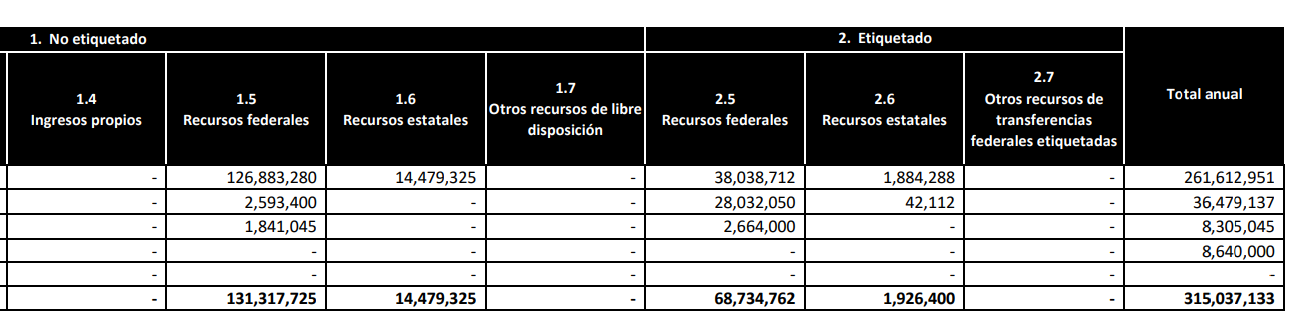 El manejo del presupuesto del municipio también era opaco. Sobre todo tomando en cuenta que sólo está disponible el Presupuesto de Egresos de 2024, aunque destaca la cantidad de presupuesto no etiquetado a disposición del municipio ese año: 131 millones 317 mil 725 pesos de presupuesto federal y 14 millones 479 mil 325 pesos de presupuesto estatal. Esto del total anual de 315 millones 37 mil 133 pesos designados para Tequila en ese periodo.