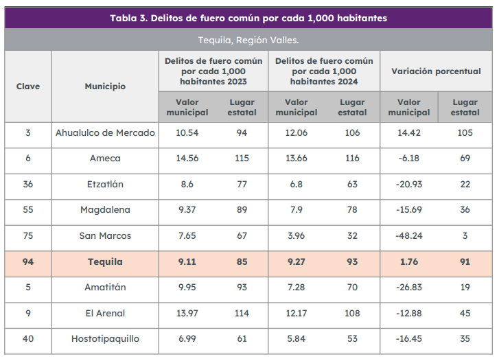 Este informe también presentó un análisis de la seguridad del municipio, incluyendo los números de delitos del fuero común en Tequila.