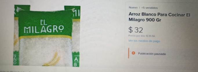 Se incluyó también ”arroz marca Milagro de 900 gr” por 45.50 pesos, en MercadoLibre este producto tiene un costo de 32 pesos, con sobreprecio del 42% por lo que se pagaron 2 mil 700 más.