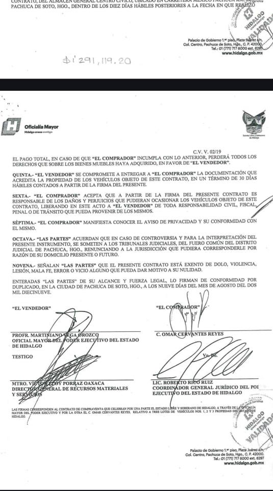 El procedimiento de compra-venta, en el que no se presentó ningún otro ofertante, fue validado el 26 de julio de 2019 por el exoficial mayor Martiniano Vega Orozco, recluido desde el 22 de junio de 2023 en el Centro de Reinserción Social (Cereso) de Pachuca, donde enfrenta tres procesos por peculado, que ascienden a 42 millones 98 mil 165 pesos.