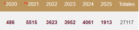 Ahora bien, la cantidad total de denuncias por año se ha mantenido relativamente consistente durante los últimos 13 años. En 2023 se recibieron 4,036 denuncias; en 2024, un total de 4,218; y en 2025, hasta la fecha, se han registrado 3,729 casos.