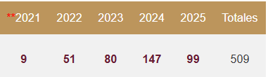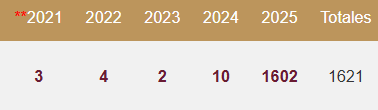 En cuanto a las carpetas en investigación, sorprende que en 2021 solo quedaron en ese estatus 3 casos; en 2022, 4; en 2023, 2; en 2024, 10; y en 2025 permanecen aún por investigarse 1,602, por lo que es notorio el rezago y los casos que tendrán que ser atendidos durante el resto del año y el 2026.