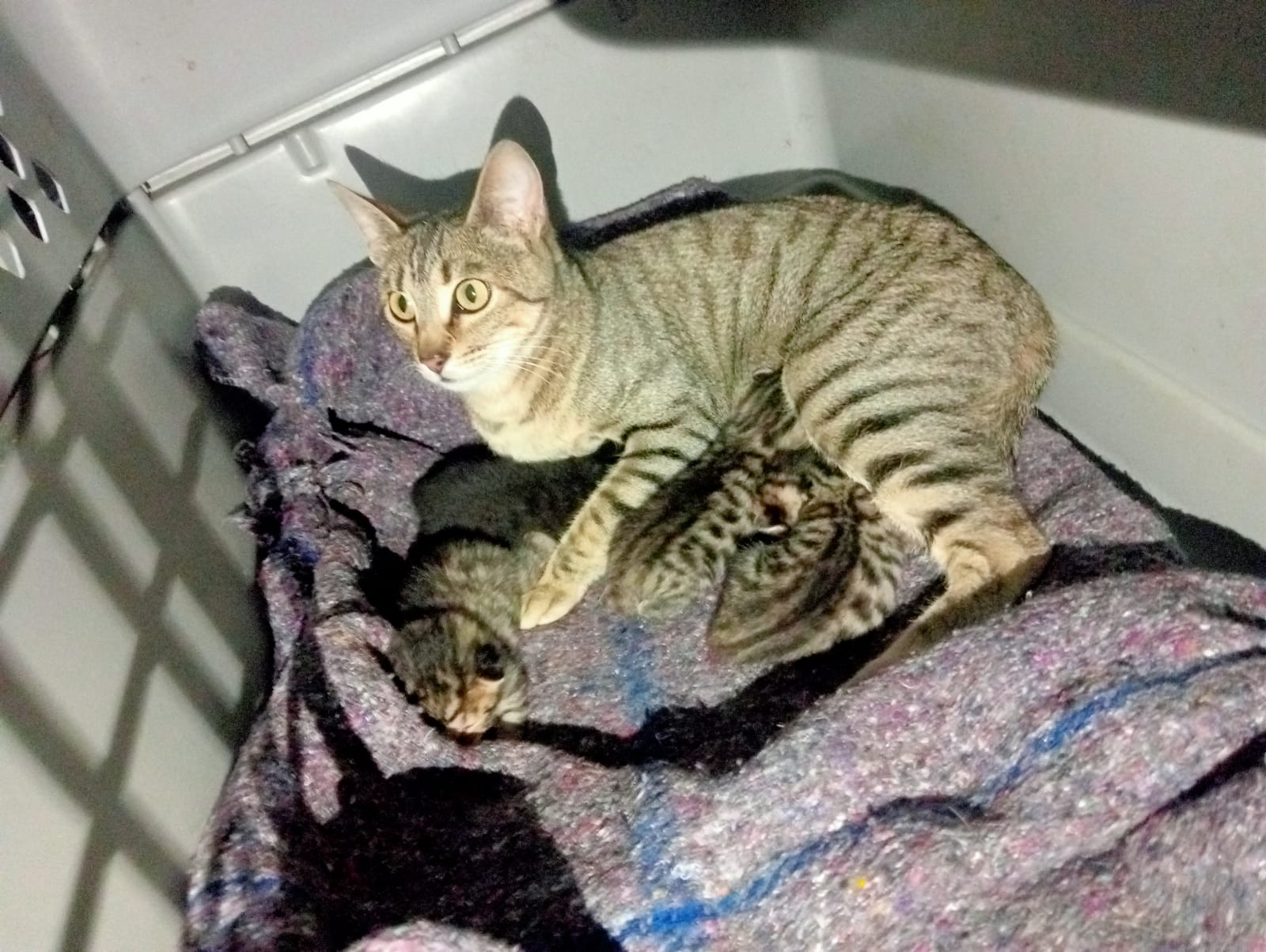 Retiro de ocho gatos en condiciones de maltrato. En la imagen, cinco de ellos, madre y cuatro cachorros. (PAOT).