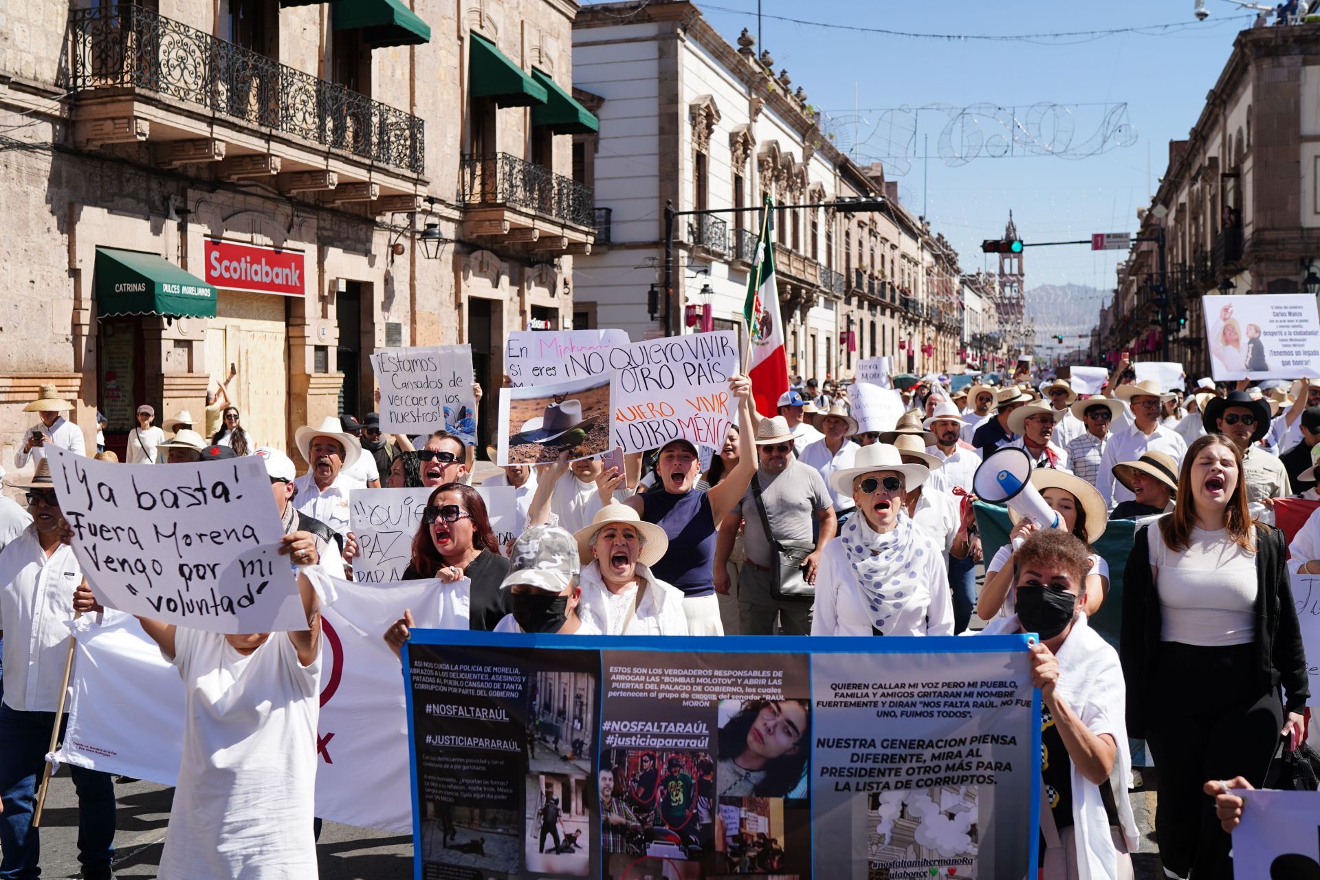 El Departamento de Estado avisó de la manera en que los tres cárteles han recurrido a la violencia para asesinar, secuestrar e intimidar a civiles, funcionarios gubernamentales y periodistas, así como policías. Imagen de la marcha del 15 de noviembre en Morelia. Foto: Juan José Estrada Serafín / Cuartoscuro.com.