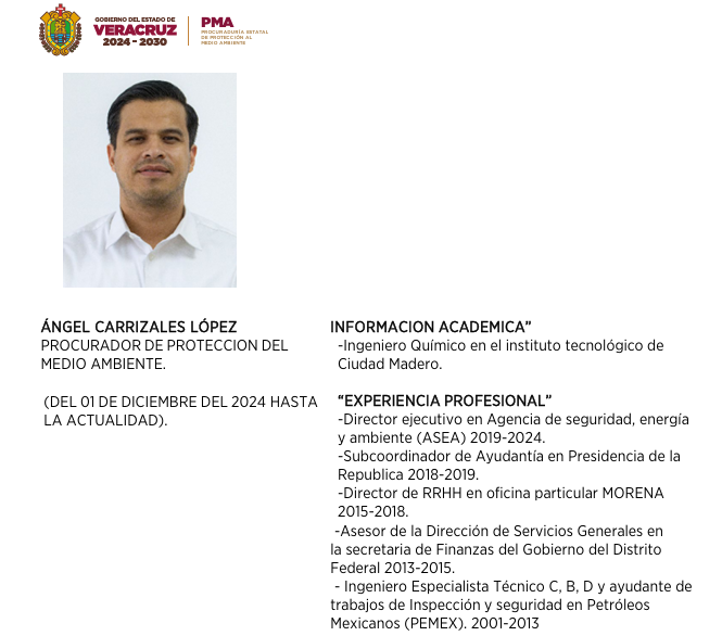 En 2019, luego de ser director de recursos humanos de Morena y parte del equipo de logística de Presidencia con Andrés Manuel López Obrador, equipo también conocido como ”Ayudantía”, Angel Carrizales fue propuesto para distintos cargos ligados al sector energético. Ángel Carrizales fue dos veces rechazado para integrarse a la Comisión Reguladora de Energía (CRE), dos para el Consejo de Administración de Pemex y una para la Comisión Nacional de Hidrocarburos (CNH). Y al no obtener ningún nombramiento del Senado de la República, fue designado directamente por el presidente López Obrador como Director Ejecutivo de la ASEA en noviembre de 2019. López Obrador defendió el nombramiento de Ángel Carrizales argumentando que tiene más peso en el servicio público la honestidad que la experiencia. “Si hablamos en términos cuantitativos, (valoro) 90 por ciento honestidad, 10 por ciento experiencia. ¿Cómo la ven?”, sostuvo en la conferencia de prensa del 28 de noviembre de 2019. Actualmente Ángel Carrizales es el procurador de Protección del Medio Ambiente en Veracruz, nombrado en 2024 por la gobernadora Rocío Nahle. Y es uno de los encargados de atender el derrame y la limpieza de las playas en la entidad.