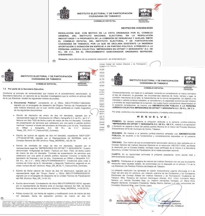 Derivado de esa resolución, el Consejo Estatal del Instituto Electoral y de Participación Ciudadana de Tabasco (IEPCT) también reconoció el ilícito y por poco sanciona a la empresa con el látigo de su desprecio: le aplicó una amonestación pública.