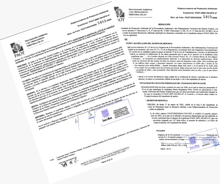 Para 2009, los vecinos presentaron otra denuncia ante PAOT, acusando que Impresores en Offset y Serigrafía había incumplido los términos de la resolución PAOT/200/DAIDA/5403/2006, y sin la intervención “de ninguna autoridad”.: