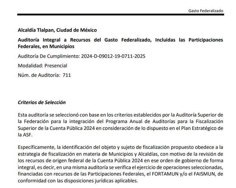 Una revisión de la Auditoría Superior de la Federación (ASF) revela un posible daño al erario de 278 millones de pesos en la alcaldía Tlalpan durante el último año de la gestión de Alfa González.