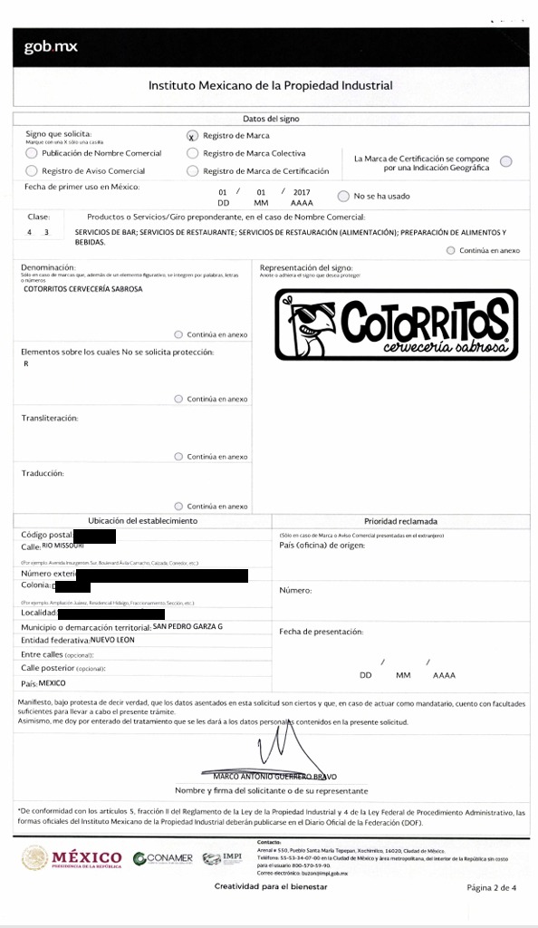 Y (27) “Cotorritos, cervecería sabrosa” (2017), cuyo titular es la empresa Ojalajale S.A. de C.V., que fue creada por Alejandro Garza Montemayor, e Ignacio Alejandro Llantado Brito en Monterrey, Nuevo León, en 2013.